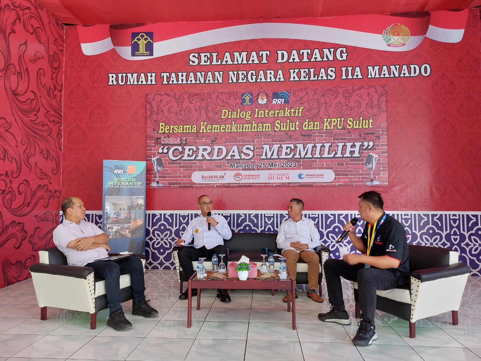‘’Atas nama Demokrasi sebagai sebuah negara hukum akan support. Saya pastikan semua mendukung, termasuk bekerjasama dengan KPU. Sebenarnya itu sudah berjalan selama ini,’’ ujar Kakanwil Ronald Lumbuun di sesi tanya jawab dalam Dialog Interaktif ‘’Cerdas Memilih’’ Bersama Kemenkumham Sulut dan KPU Sulut yang dipandu Bobby Sambeka dari RRI Manado di Aula Rutan Manado, Kamis (25/5). Tampil juga Narasumber dari KPU yang diwakili Komisioner KPU Minahasa Peter PD Maweikere dan Pengamat Politik dari Unsrat, Dr Alfons Kimbal, S.Sos, M.Si.