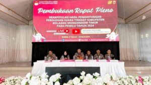 Diketahui pleno rekapitulasi hasil perhituangan perolehan suara tingkat Kabupaten mulai dihitunh dari Kecamatan Motongkad dan Kecamatan Mooat stelah itu dilanjutkan dengan kecamatan-kecamatan lainya. di perkiraan perhitungan rekapitulasi hingga Sabtu 2 Maret 2024. (jux)