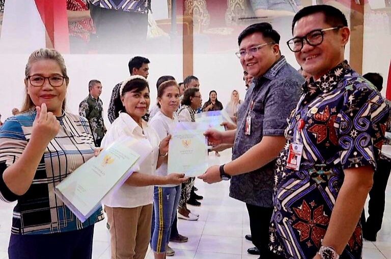 Kamis (29/2/2024), Bupati Joune Ganda dan Wakil Bupati Kevin William Lotulung (JG-KWL), kembali turun lapangan dan menyerahan sertifikat tanah kepada masyarakat di Kecamatan Talawaan.
