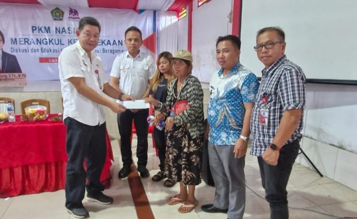 Penyerahan bantuan diberikan kepada pihak keluarga oleh Kadis Sosial Arnoldus Didi Wolayan didampingi Staf khusus Bupati bidang pengembangan Komunikasi dan Informasi Publik Fernandus Yusi Adam, Camat Dimembe Alfons Tintingon dan Hukum Tua Desa Laikiit Frans Manua di kantor Desa Laikit, Rabu (06/03/24).