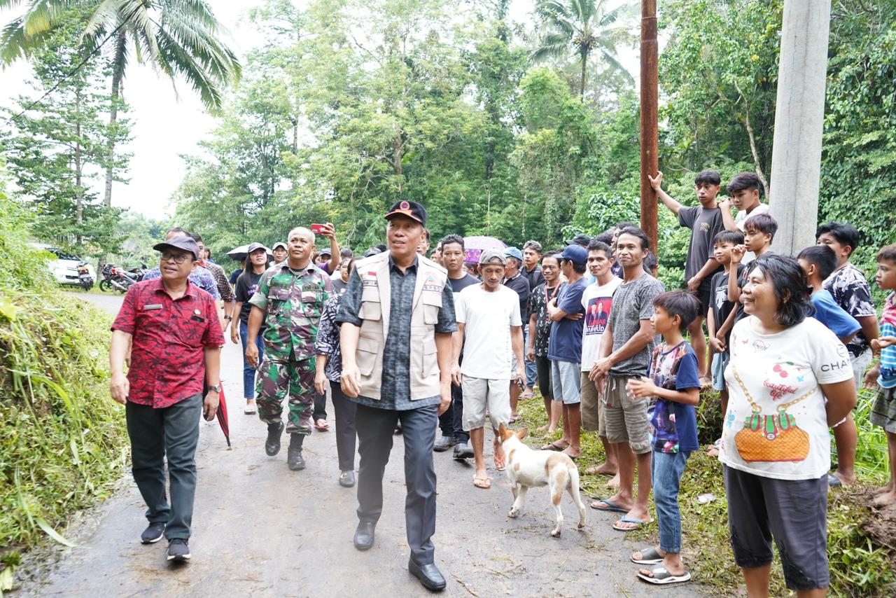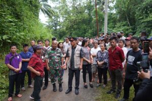Bupati Minahasa Selatan Bpk. Franky Donny Wongkar, SH. Saat Meninjau lokasi bencana alam tanah longsor Ruas Jalan Maliku – Kotamenara Kecamatan Amurang Timur, sekaligus menyaksikan pekerjaan pembukaan akses jalan menggunakan alat berat tersebut menghimbau kepada masyarakat untuk waspada dan berhati-hati karena musim penghujan ini, terutama di daerah rawan bencana. Lebih lanjut Bupati FDW menyampaikan kepada pemerintah setempat agar bersama-sama masyarakat untuk digalakan kembali kegiatan kerja bakti membersihkan jalan-jalan untuk kemudahan dan kenyamanan bersama, juga waspada dan tetap berkoordinasi dengan instansi/dinas terkait. Turut hadir Kepala BPBD, Plt. Kepala Dinas Kominfo, Sekretaris Dinas PUTR bersama Tim, Camat Amurang Timur, Danramil 1302-14/Amurang bersama Jajaran, serta Hukum Tua Desa Maliku dan Hukum Tua Desa Kotamenara. (***)