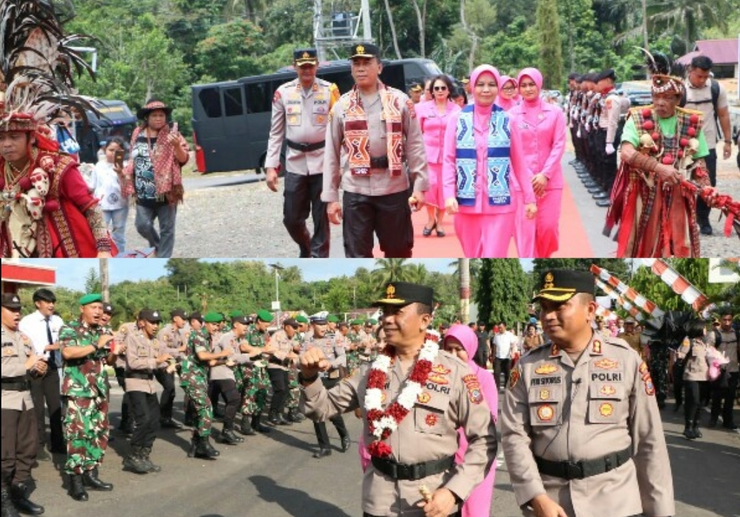 Saat tiba di Mapolres Minsel, Kapolda dan Ketua Bhayangkari Sulut serta romongan disambut oleh Kapolres Minsel AKBP Feri R. Sitorus bersama Forkopimda Minsel dan PJU Polres Minsel.