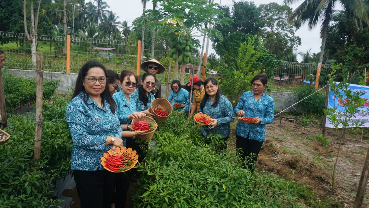 Ketua TP-PKK Mitra Ellen Cumentas Panen Cabai Merah di Desa Molompar Atas