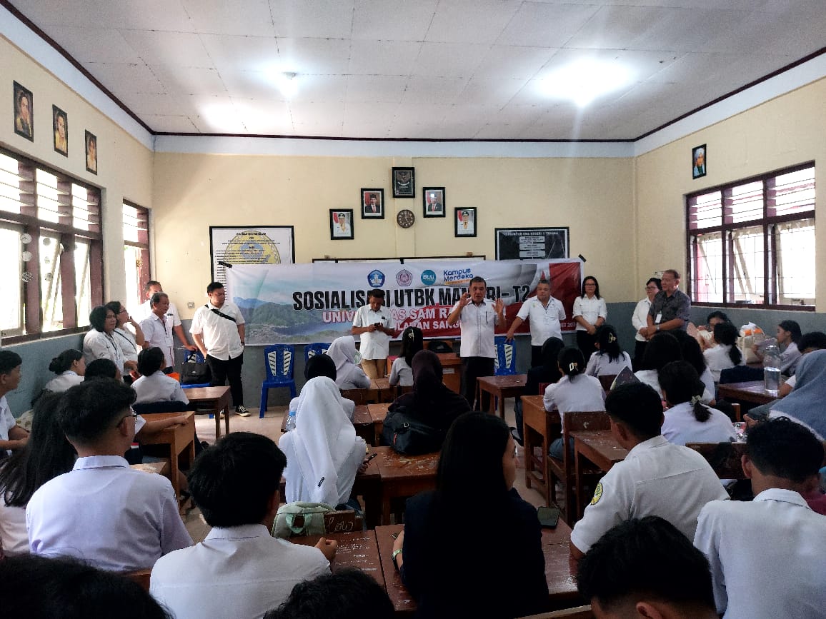 TAHUNA,Radarmanadoonline.com–Sosialisasi tentang penerimaan calon mahasiswa Unsrat tahun 2024 jalur Mandiri-T2 melalui UTBK dilaksanakan di SMA Negeri 1 Tahuna Kabupaten Kepulauan Sangihe, Senin (20/05/2024).