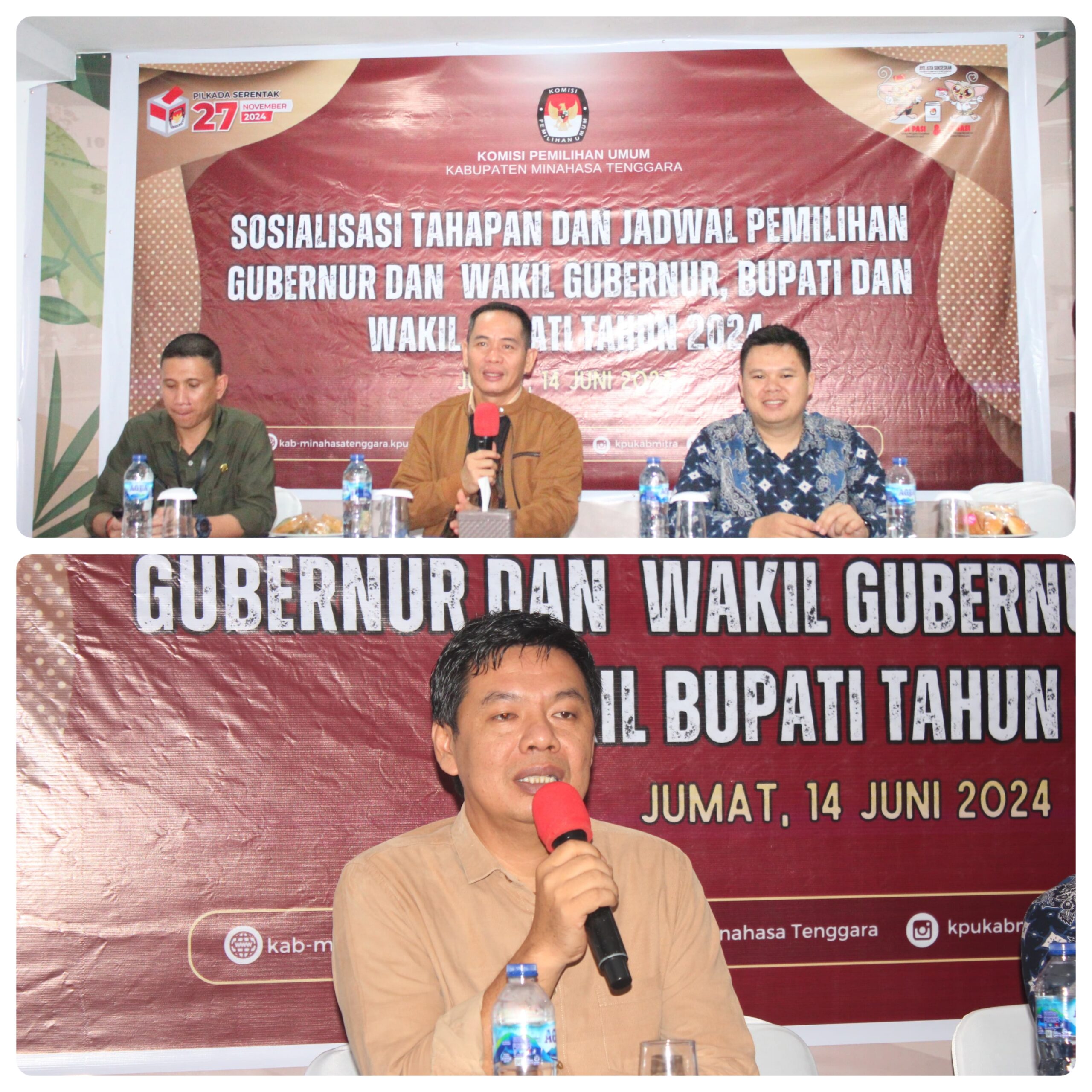 MITRA, Radarmanadoonline.com–Komisi Pemilihan Umum (KPU) Kabupaten Minahasa Tenggara (Mitra), menggelar sosialisasi tahapan dan jadwal pemilihan Gubernur dan Wakil Gubernur, Bupati dan Wakil Bupati tahun 2024 bertempat di Hotel D’jtos Ratahan, Jumat (14/06/2024).