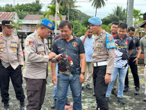 MINSEL – Radarmanadoonline.com – Usai memberikan arahan kepada ratusan personel jajaran Polres Minsel saat apel pagi, Kamis (20/06/2024), Kapolres AKBP Feri R. Sitorus mendadak periksa Handphone anggota.