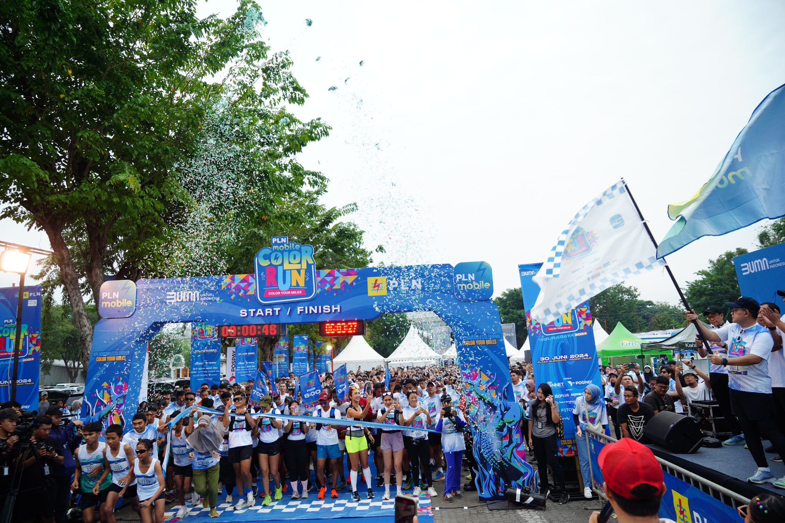 SURABAYA,Radarmanadoonline–PT PLN (Persero) sukses menggelar PLN Mobile Color Run 2024 di Plaza Surabaya, Minggu (30/06). Diikuti sekitar 1.500 peserta, ajang lari sejauh 5 kilometer ini berupaya menggaungkan spirit gaya hidup sehat dan ramah lingkungan (green lifestyle).