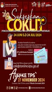 Ia mengatakan, pencoklitan akan berlangsung selama satu bulan dan telah dimulai sejak 24 Juni hingga 24 Juli 2024 mendatang, partisipas aktif dari masyarakat yang memiliki hak pilih sangat penting untuk kesuksesan Pilkada.
