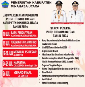 Berikut jadwal tahapan pemilihan Putri Otonomi Daerah (POD) Kabupaten Minahasa Utara: