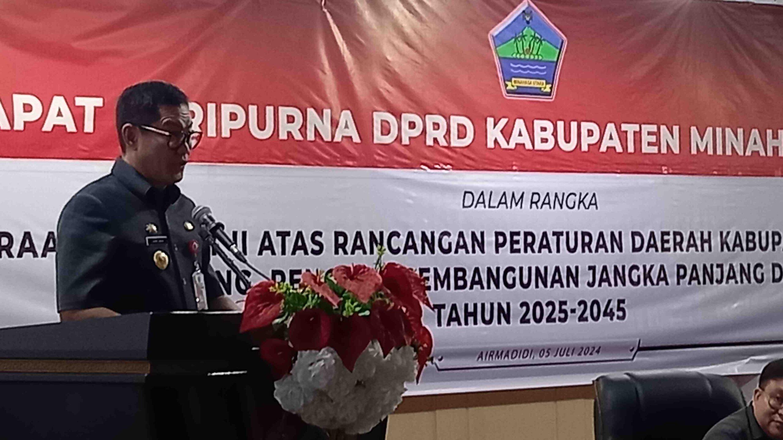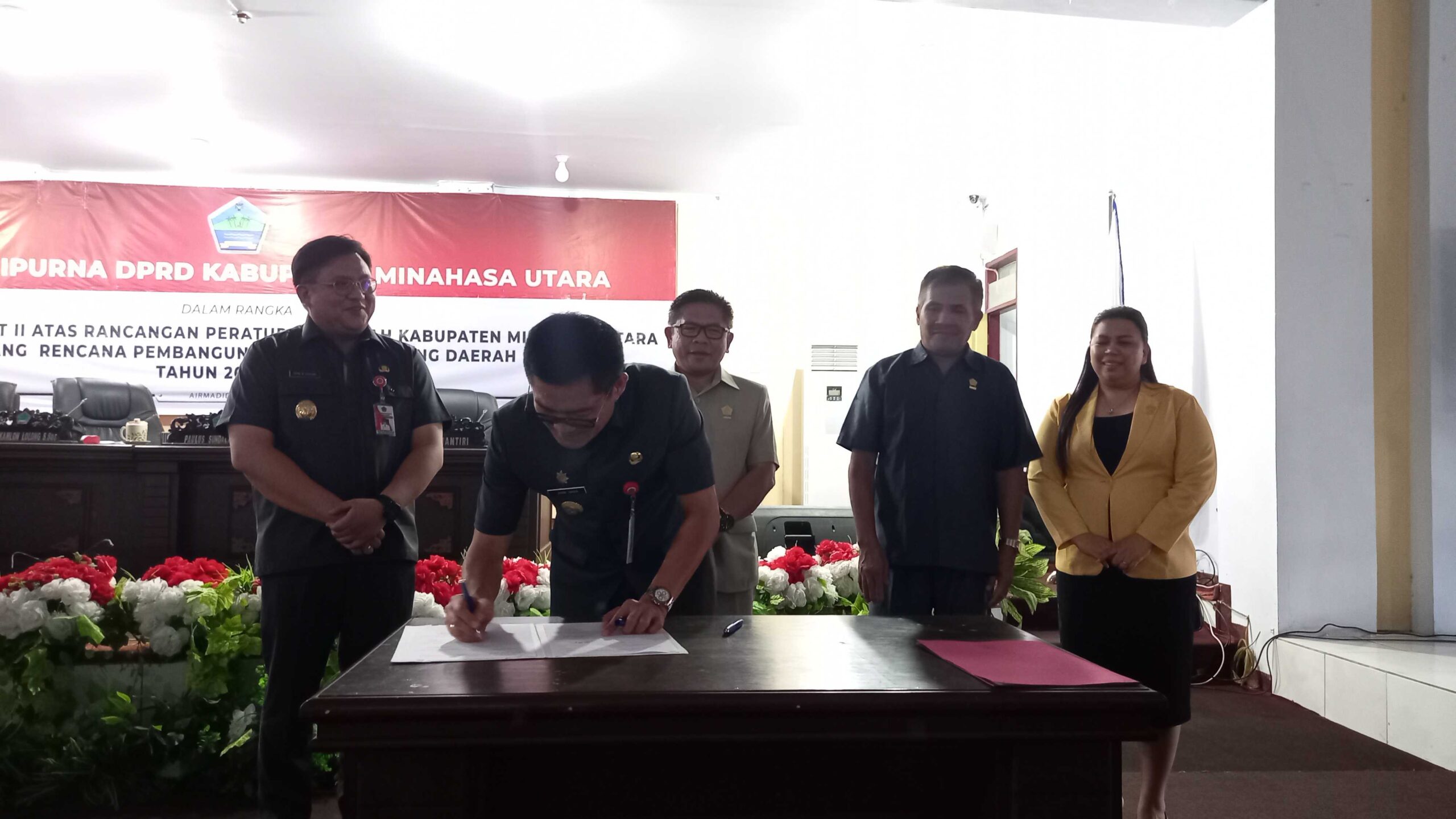 Ia menambahkan, berbagai tahapan telah kita lewati bersama, semoga maksud dan tujuan penyusunan Ranperda RPJPD Kabupaten Minahasa Utara ini, boleh terlaksana dengan baik untuk kemajuan kita semua.