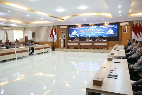 MANADO – Radarmanadoonline.com – Jelang pelaksanaan Operasi Patuh Samrat 2024, Polda Sulawesi Utara menggelar latihan pra operasi (Latpraops), yang dibuka oleh Wakapolda Sulut Brigjen Pol Bahagia Dachi didampingi Karo Ops Kombes Pol Mugi Sekar Jaya dan Dirlantas Kombes Pol Rachmad Iswan Nusi, di aula Tribrata Polda Sulut, Rabu (10/7/2024).