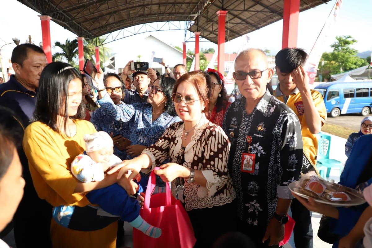 Bupati Sorongan Bersama Ketua TP-PKK Ellen Cumentas Bagikan Makanan Bergizi Keluarga Untuk Anak Stunting Dan Beresiko Stunting