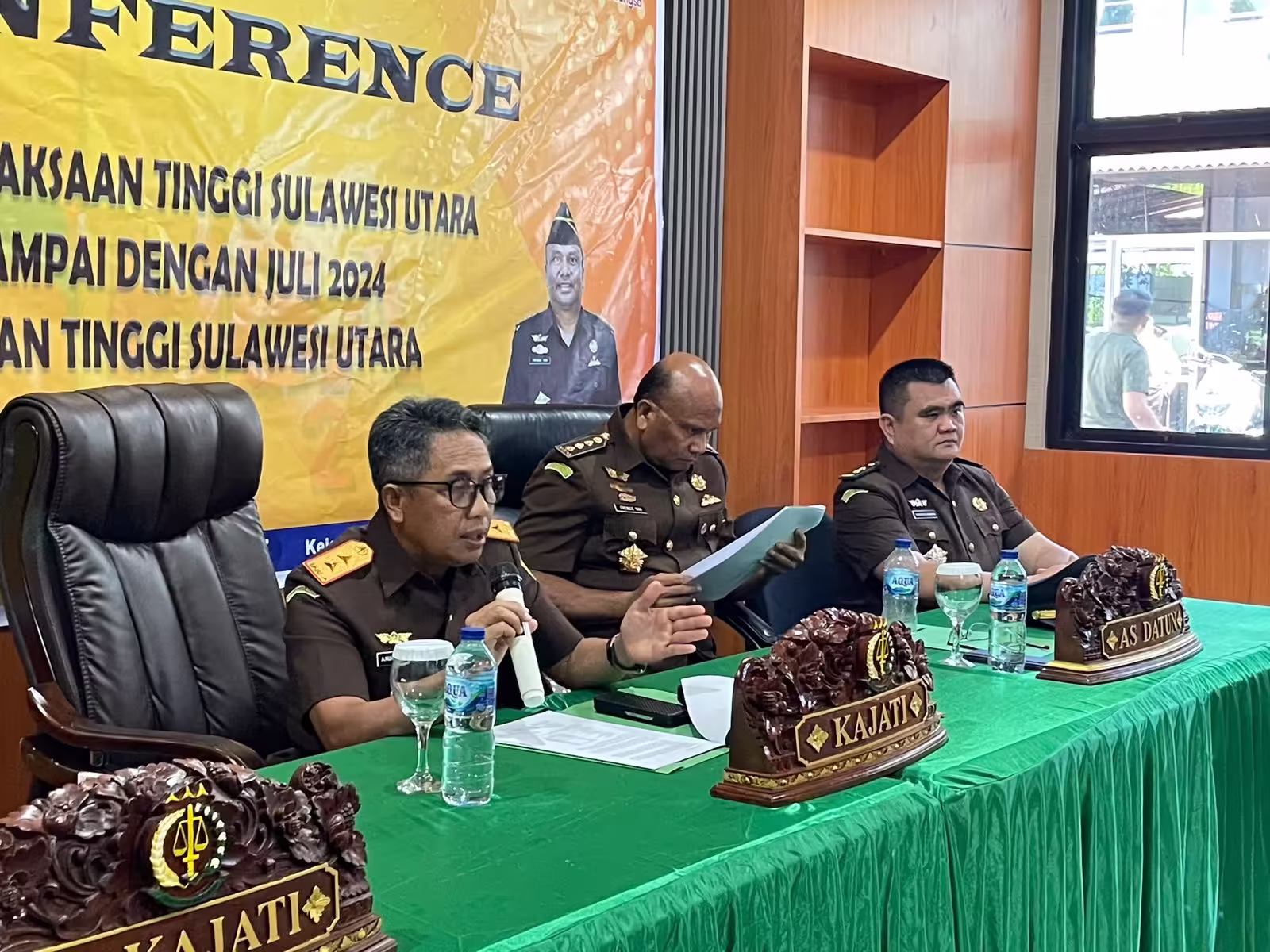“Pada kesempatan ini, saya hendak menyampaikan kepada publik atau masyarakat luas tentang kinerja Kejaksaan Tinggi Sulawesi Utara selama periode Januari 2024 sampai dengan Juli 2024,” ujar Kajati Sulut.