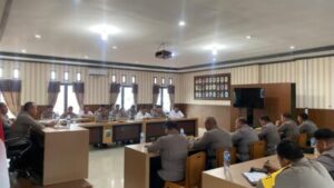 MINAHASA – Radarmanadoonline.com – Kapolres Minahasa AKBP S. Sophian, didampingi Wakapolres Kompol Sumaji, memimpin kegiatan Analisa dan Evaluasi (Anev) di Rang Maesa Mako Polres Minahasa, Senin (5/8/2024).
