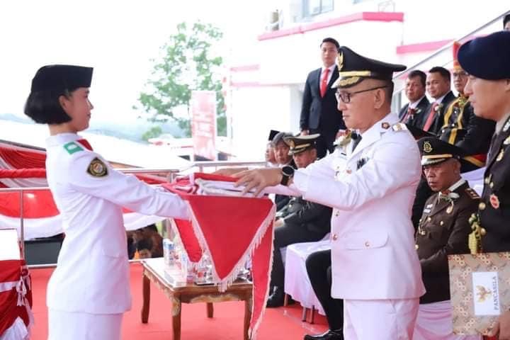 MITRA,Radarmanadoonline.com– Penjabat Bupati Minahasa Tenggara (Mitra) Ir Ronald Sorongan, bertindak selaku Inspektur upacara (Irup) pada Pengibaran Bendera Merah Putih dalam rangka peringatan Hari Ulang Tahun (HUT) Ke-79 Kemerdekaan Republik Indonesia.
