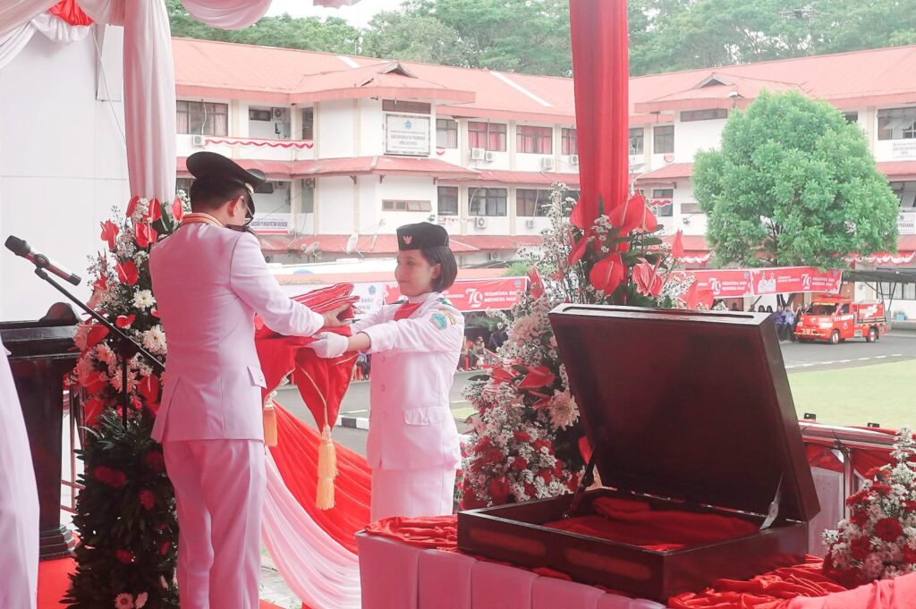 Prosesi pengibaran bendera Merah Putih oleh anggota Pasukan Pengibar Bendera Pusaka (Paskibraka) yang berasal dari perwakilan siswa-siswi terpilih SMA sederajat se-Kabupaten Minahasa Utara, sukses melaksanakan tugasnya dengan baik.