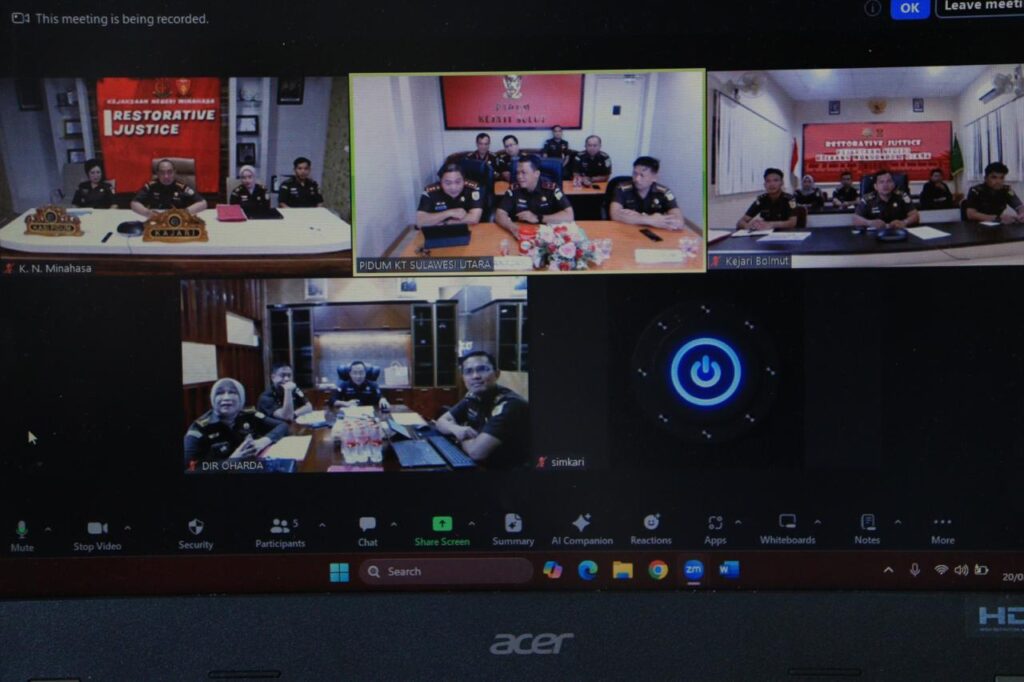 MANADO,Radarmanadoonline.com_Wakil Kepala Kejaksaan Tinggi Sulawesi Utara Transiswara Adhi, Asisten Bidang Tindak Pidana Umum Jeffry Maukar melaksanakan ekspose perkara Restorative Justice (RJ) secara virtual yang dipimpin oleh Direktur Oharda pada Jaksa Agung Muda Tindak Pidana Umum Nanang Ibrahim Soleh.