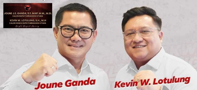 Joune Ganda dan Kevin William Lotulung (JGKWL) salah satu yang mendapatkan rekomendasi DPP PDIP Perjuangan sebagai bakal Calon Bupati dan Wakil Bupati Minahasa Utara.