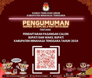 MITRA–Komisi Pemilihan Umum (KPU) Kabupaten Minahasa Tenggara (Mitra) resmi umumkan Pendaftaran Pasangan Bupati dan Wakil Bupati tahun 2024 pada Sabtu, 24 Agustus 2024.