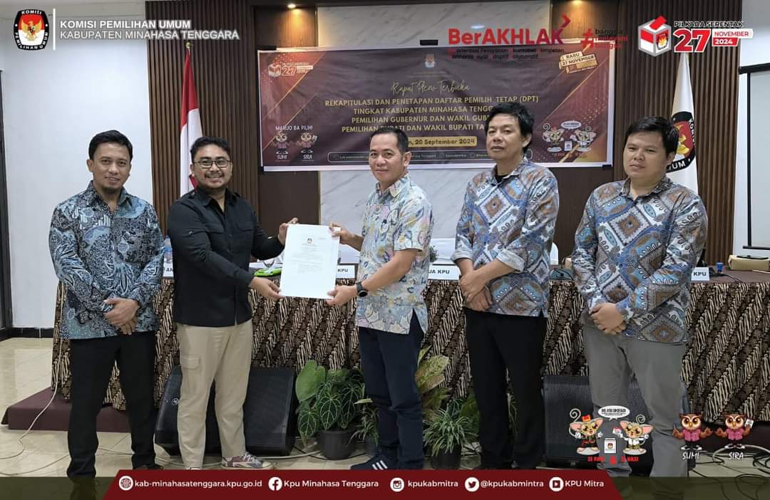 MITRA,Radarmanadoonline–Komisi Pemilihan Umum (KPU) Kabupaten Minahasa Tenggara (Mitra) menetapkan Daftar Pemilih Tetap (DPT) untuk Pemilihan Gubernur dan Wakil Gubernur serta Bupati dan Wakil Bupati dalam Pilkada serentak 2024.