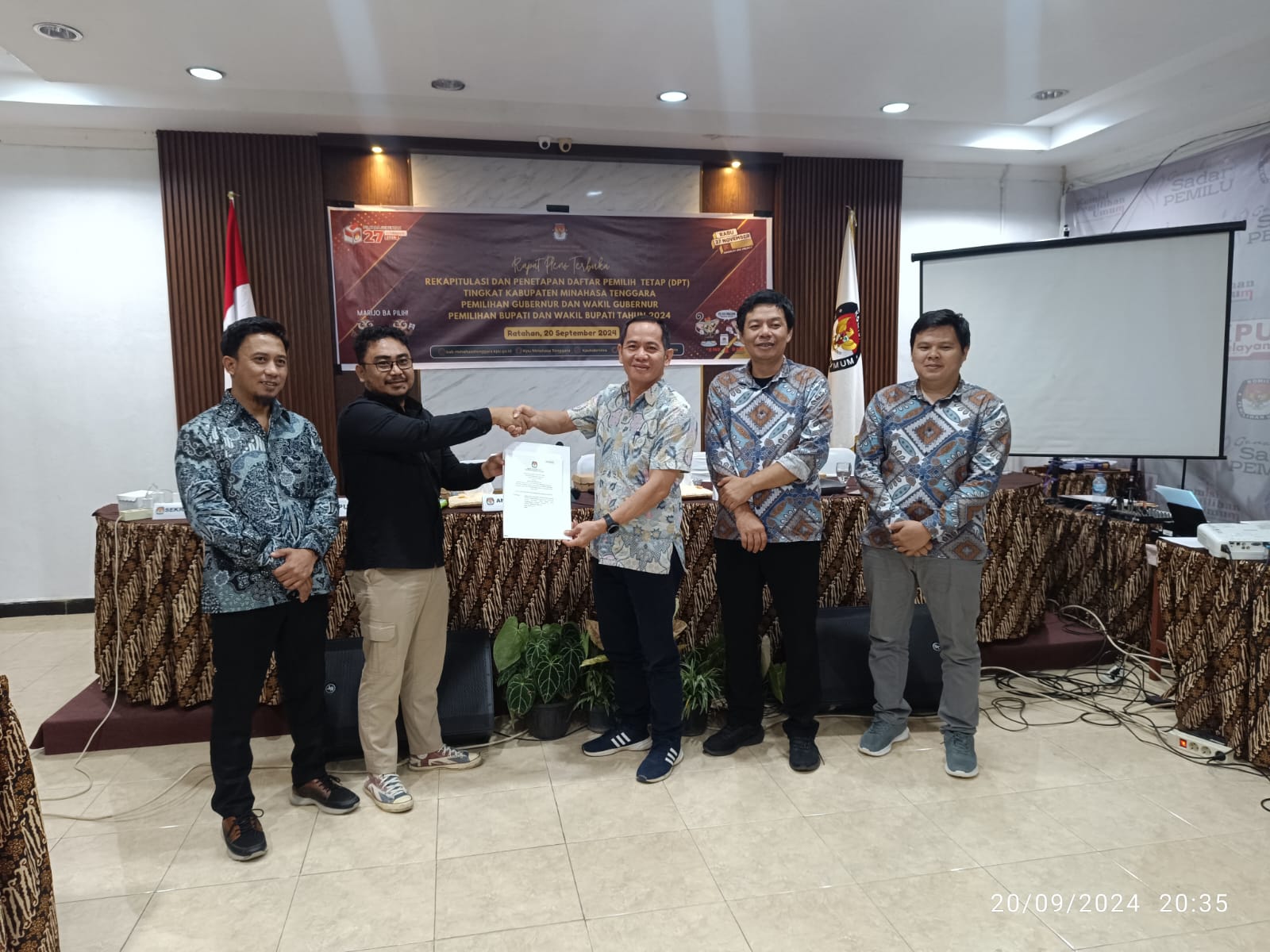 Kegiatan rapat Pleno penetapan DPT KPU Minahasa Tenggara (Mitra) dilasanakan di Aula Kantor KPU, Jumat 20 September.