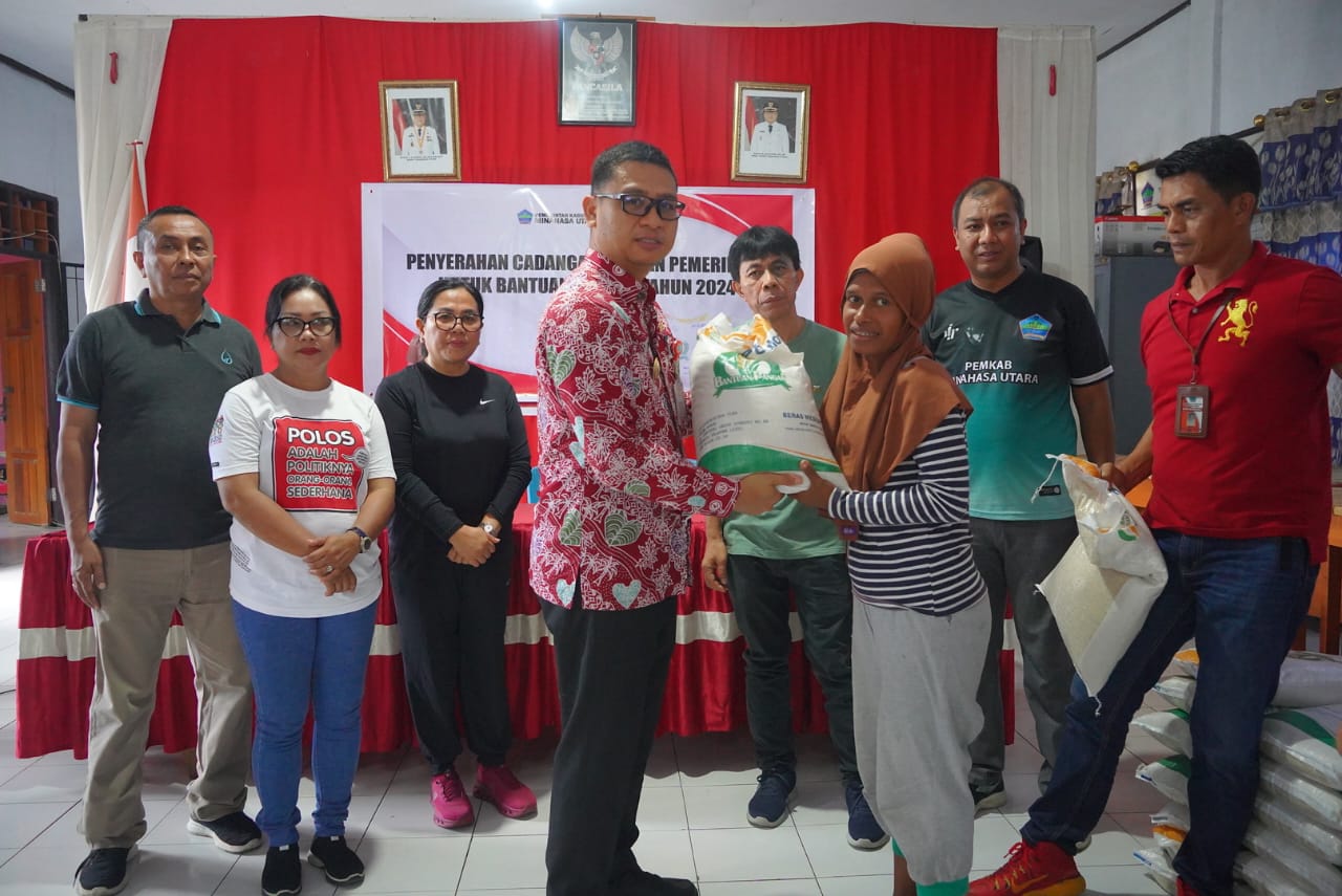 Pjs Bupati Reza Dotulung menyerahkan Bantuan Cadangan Pangan Beras tahap tiga kepada masyarakat penerima manfaat, di Desa Karegesan Kecamatan Kauditan, Jumat (04/10/24).