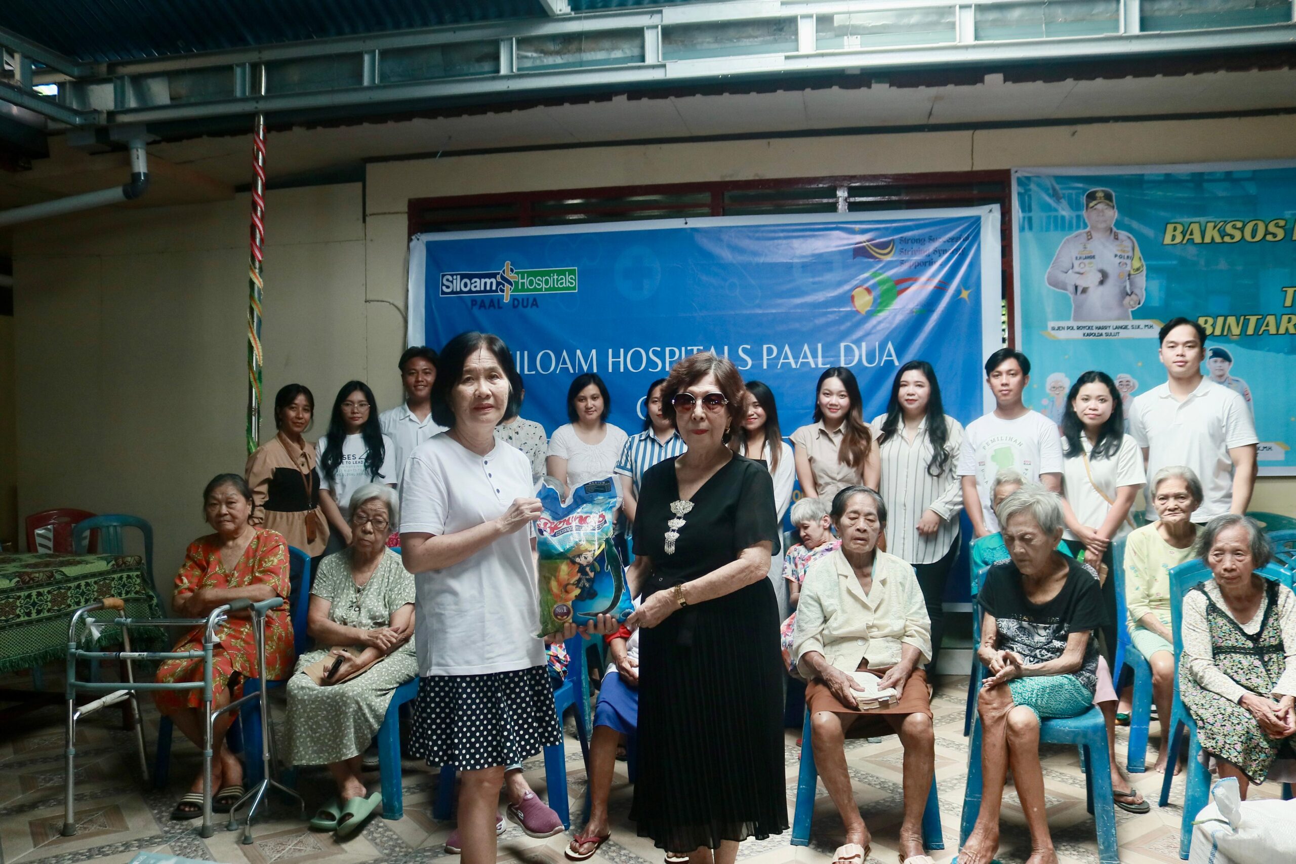 Di kesempatan tersebut, panitia dan karyawan RS Siloam Paal Dua membawakan kidung pujian rohani berjudul Tangan Tuhan Sedang Merenda. Kidung pujian rohani juga dilantunkan para Lansia perempuan dilanjutkan dengan solo. Sembako yang terkumpul dari para karyawan RS Siloam Paal Dua diserahkan secara simbolis hari itu juga oleh Direktur Dr Paulina Kasih, M.Kes kepada Ketua Panti Werdha Damai Olva Sumual.