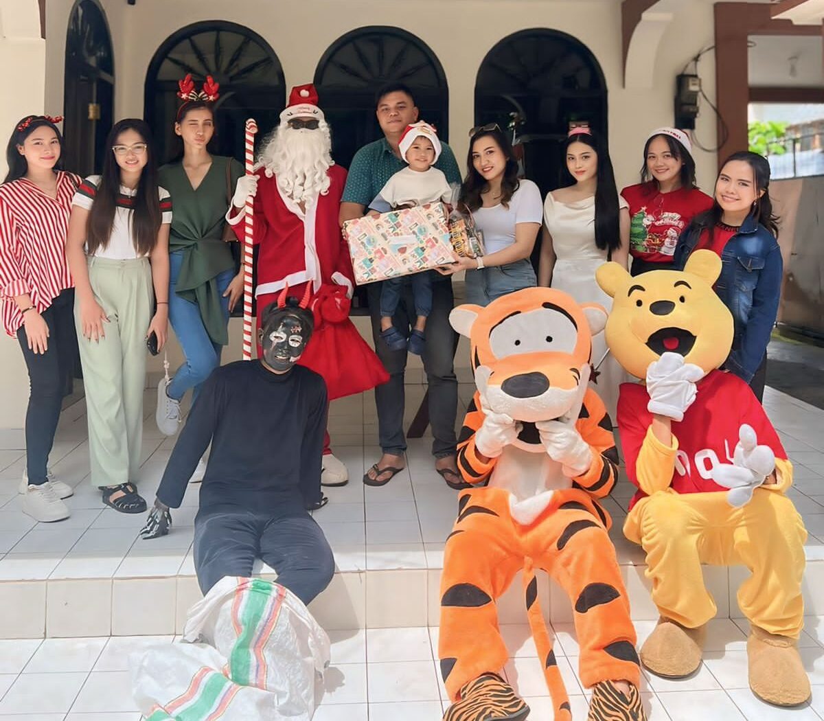 BERI BINGKISAN: Tim Santa Claus PPB 2024 saat menemui salah seorang anak.(FOTO/DOK IPPB)