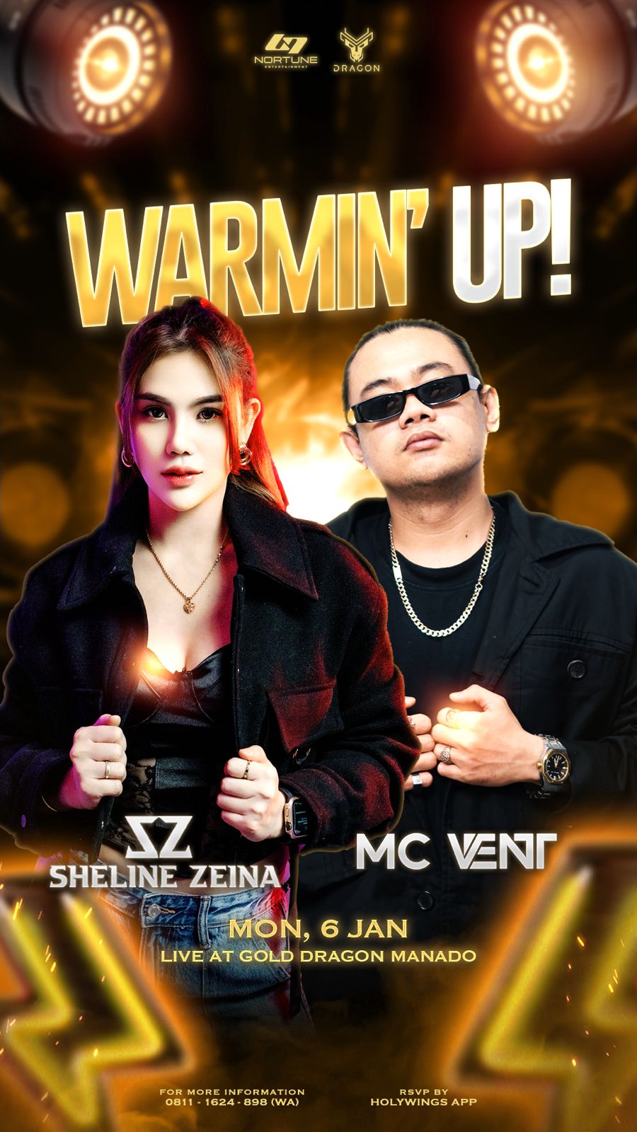 Seusai di Carpediem Cafe Resto and Bar, DJ Sheline Zeina akan tampil di acara bertajuk Warmin Up di Gold Dragon Manado, 6 Januari 2025.