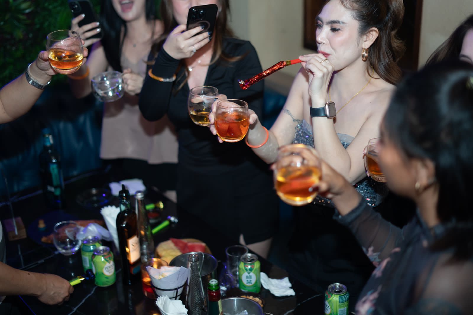 Saat detik-detik menjelang tahun 2025, pemeran film Menjemput Ajal menyempatkan bersulang bersama teman-temanya dan pengunjung. “Pastinya senang bertemu dengan teman-teman. Setelah bersulang, kami sempat foto bersama,” ucapnya.