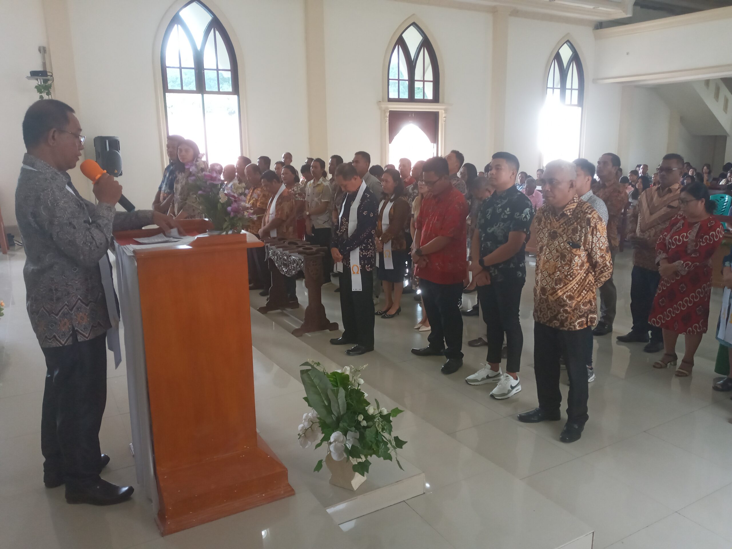 MANADO, Radarmanadoonline.com-Panitia Temu Teknis Hari Persatuan (Hapsa) Pria/Kaum Bapa (P/KB) GMIM Tahun 2025 telah dilantik dalam ibadah sesi 2 pukul 09.00 Wita, di Gereja GMIM Eben Haezer Kombos, Minggu (26/1/2025). Panitia Temu Teknis Hapsa P/KB GMIM 2025 dilantik oleh Wakil Sekretaris Bidang BIPRA dan Lansia BPMS GMIM Pdt Djefry Saisab M.Th sekaligus sebagai khadim di ibadah ini. Ibadah sekaligus pelantikan panitia Temu Teknis Hapsa P/KB GMIM 2025 yang dihadiri Ketua P/KB Sinode GMIM Pnt Ir Maurits Mantiri, diawali pembacaan SK dari Badan Pekerja Majelis Sinode (BPMS) GMIM oleh Anggota Kesekretariatan dan P/KB Center Pnt Franky Mokodompis S.Sos.