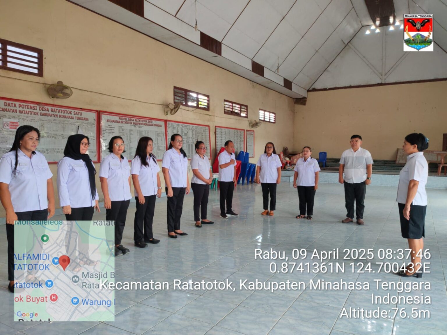 RATATOTOK,Radarmanadoonline–Pemerintah Desa (Pemdes) Ratatotok Satu, Kecamatan Ratatotok, Kabupaten Minahasa Tenggara, Provinsi Sulawesi Utara menggelar apel perdana pasca libur panjang, bertempat di Balai Desa Ratatotok Satu pada Rabu, 9 April 2025.