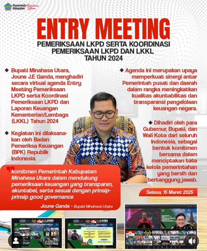 MINUT,Radramanadoonline.com_Bupati Joune Ganda menghadiri secara virtual agenda Entry Meeting Pemeriksaan Laporan Keuangan Pemerintah Daerah (LKPD) serta Koordinasi Pemeriksaan LKPD dan Laporan Keuangan Kementerian/Lembaga (LKKL) Tahun 2024.