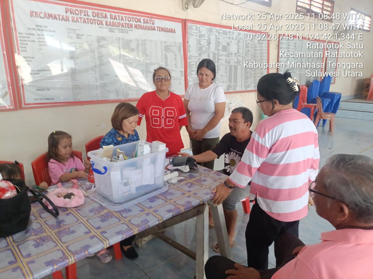 RATATOTOK,Radarmanadoonline–Pemerintah Desa Ratatotok Satu bersama Puskesmas Ratatotok kabupaten Minahasa Tenggara (Mitra) mengelar kegiatan Posyandu, Jumat (25-4-2025).