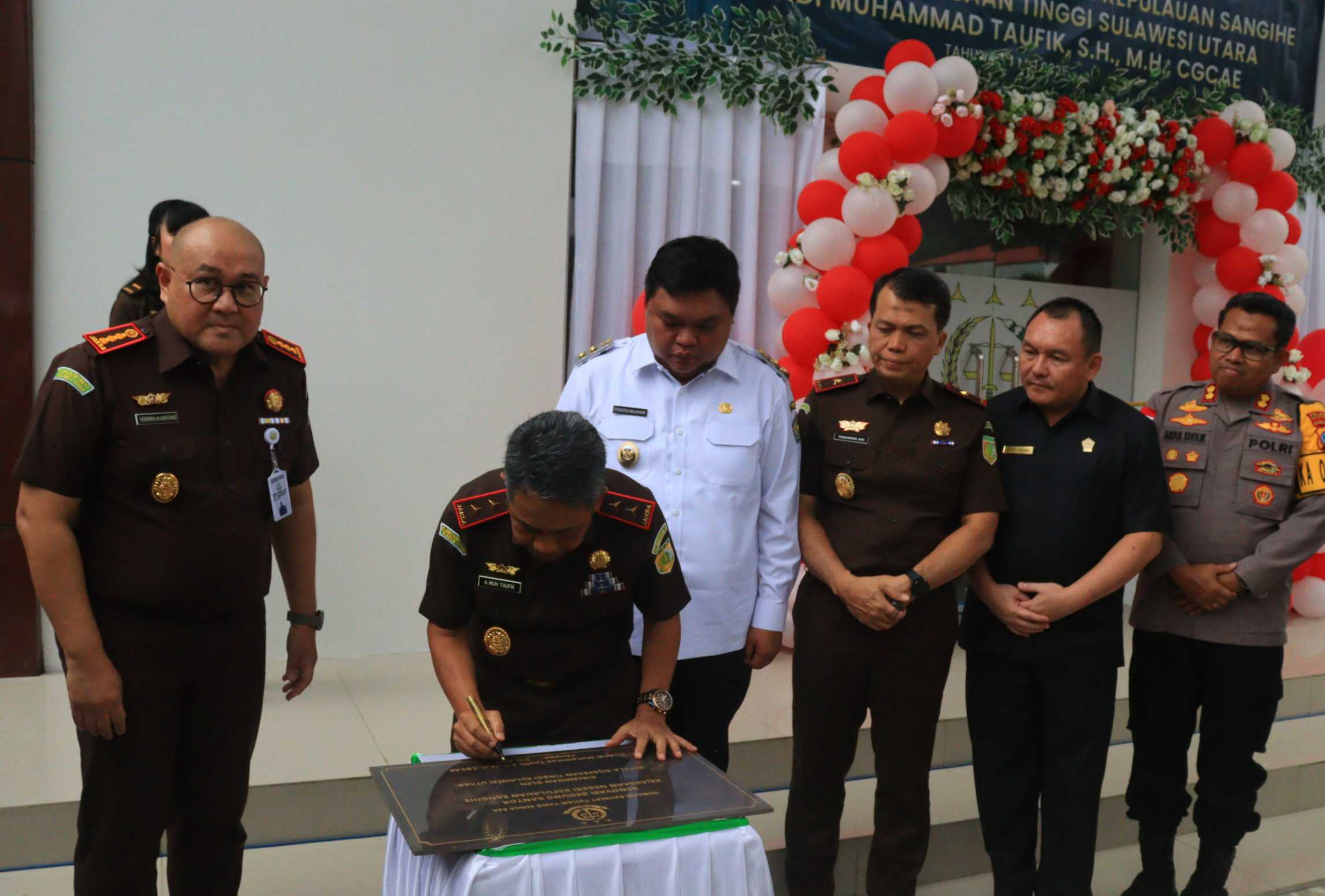 MANADO,Radarmanadoonline.com_Kepala Kejaksaan Tinggi Sulawesi Utara Dr. Andi Muhammad Taufik, SH., MH., CGCAE melaksanakan kunjungan kerja sekaligus meresmikan gedung baru kantor Kejaksaan Negeri Kepulauan Sangihe pada Rabu (21/05/25).