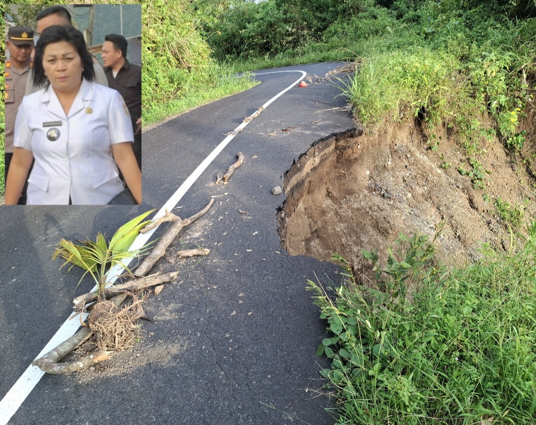 Jalan Penghubung Desa Wineru dan Makalelon Nyaris Putus Akibat Longsor, Camat Kakas Rita Maindoka Sebut Sudah Disampaikan ke Dinas Terkait