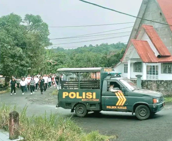 Polsek Kakas Kawal Kegiatan Jalan Sehat dan Ibadah HUT ke-346 Kecamatan Kakas. (foto/ist)