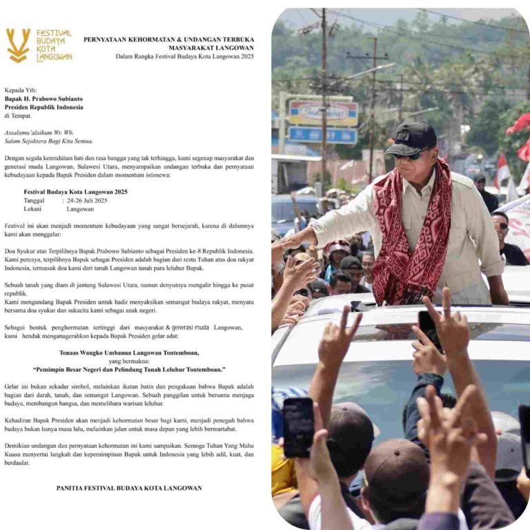 Festival Budaya Kota Langowan (FBKL) 2025 akan digelar selama tiga hari mulai 24 hingga 26 July 2025. Undangan terbuka kepada Presiden yang dikenal memiliki akar keturunan Minahasa ini disampaikan dengan penuh harap.