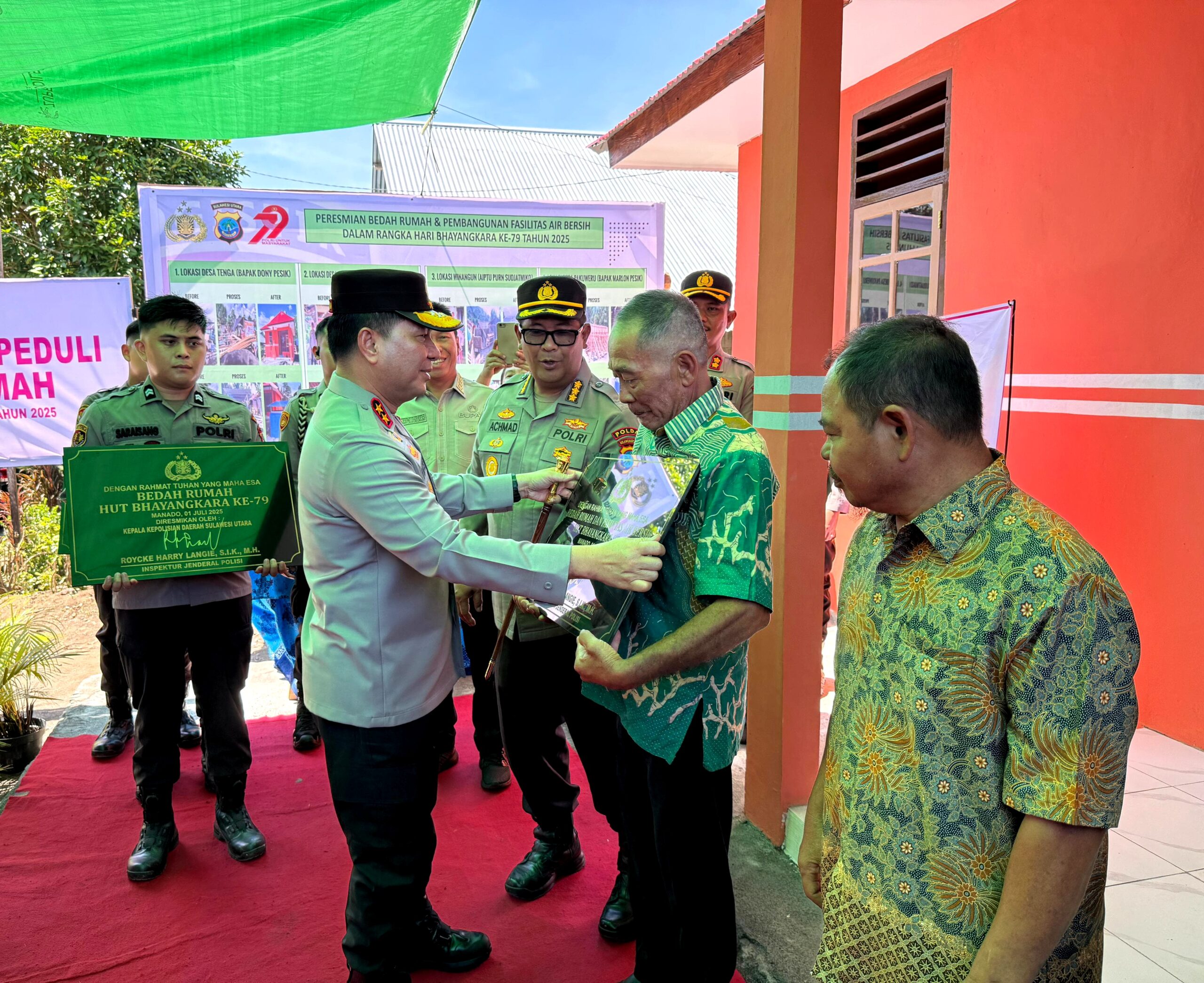 MINSEL,Radarmanadoonline.com – Kapolda Sulawesi Utara Irjen Pol Roycke Harry Langie meresmikan program bedah rumah dan pembangunan fasilitas air bersih di Kecamatan Tenga, Kabupaten Minahasa Selatan (Minsel), Kamis (10/7/2025).
