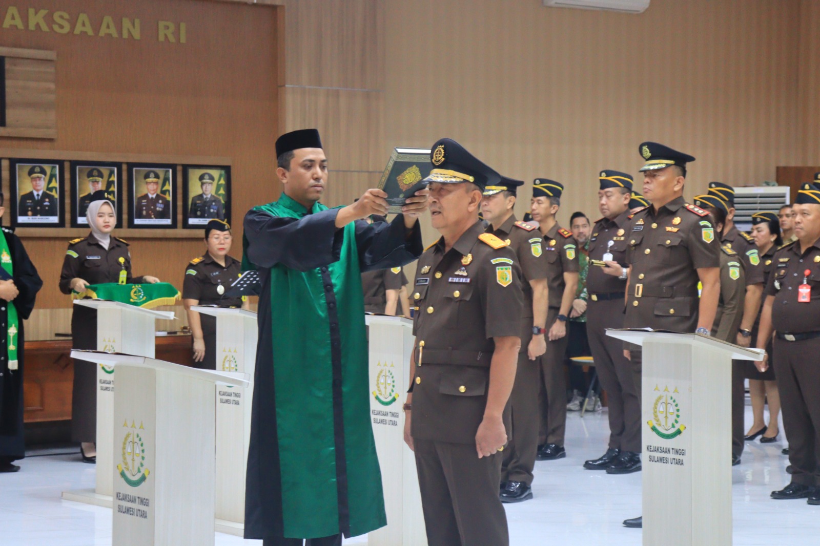 Pelantikan dan serah terima jabatan digelar di Aula Sam Ratulangi Kejaksaan Tinggi Sulawesi Utara, Kamis (24/07/25).