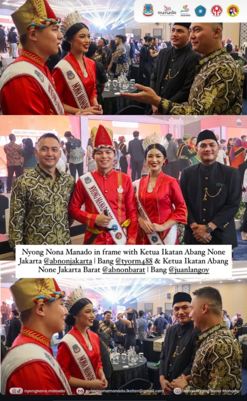 Tim Nyong-Nona Manado yang ke Jakarta itu dipimpin oleh Ketua Panitia Pemilihan Nyong-Nona Manado (PNNM) 2025 Resa Yan Sambuaga, S.E. Di Jakarta, Nyong Wiliam, Nona Franda dan Nyong Resa dijamu Noni Sulut 1980 Honney Kussoy, Nyong Sulut 1979 Ir. Tonny Nelwan, dan Nyong Manado/Nyong Sulut Benedict Narande, S.E. Grand final pemilihan Abang-None Jakbar 2025, dihelat di Hotel Aston Kartika, Jalan Kyai Tapa, Tomang, Grogol Petamburan, Kamis (24/7/2025) malam. Di acara tersebut Rendy Wicaksana dan Anesya Anggun selaku MC, mendaulat Wiliam.dan Franda, untuk tampil dipanggung sekaligus diperkenalkan. Terpilih dan dinobatkan sebagai Abang Jakarta Barat 2025 Audy dan None Jakarta Barat 2025 Myscha, Wakil 1 Abang Jakarta Barat 2025 Adam, Wakil 1 None Jakarta Barat 2025 Arghea, Wakil 2 Abang Jakarta Barat 2025 Atha dan Wakil 2 None Jakarta Barat 2025 Netta. Harapan 1 Abang Jakarta Barat 2025 Ganta dan Harapan 1 None Jakarta Barat 2025 Shaza, Harapan 2 Abang Jakarta Barat 2025 Zhofir,. Harapan.3 Abang Jakarta Barat 2025, Harapan 3 Abang Jakarta Barat 2025 Faiz, Harapan 3 None Jakarta Barat 2025 Michelle. Abang Jakarta Barat Favorit 2025 Dino dan None Jakarta Barat Favorit 2025 Bulan.