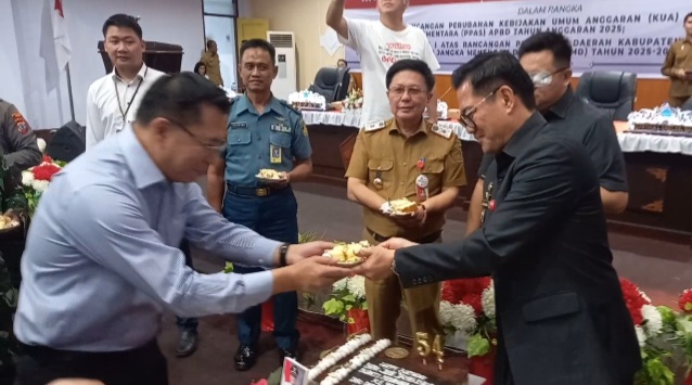 Di akhir sidang yang membahas Rancangan Perubahan KUA dan PPAS APBD Tahun Anggaran 2025 itu, Bupati Minut Joune Ganda mendapat kejutan ulang tahun dari jajaran Sekretariat DPRD.