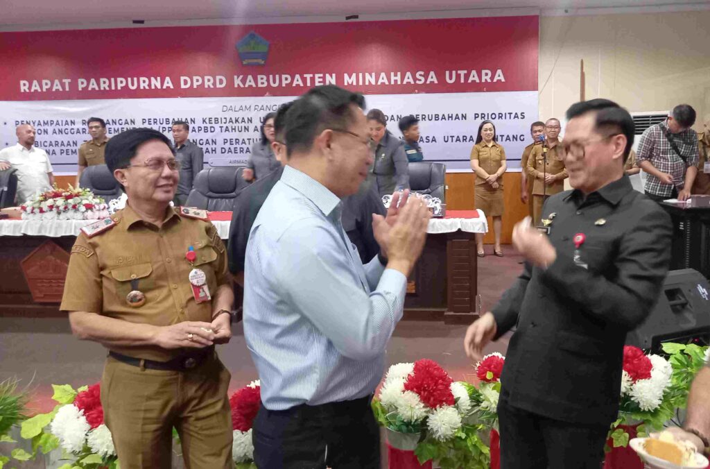 MINUT,Radarmanadoonline.com_Suasana penuh kehangatan mewarnai rapat paripurna DPRD Kabupaten Minahasa Utara yang berlangsung di Gedung Tumatenden DPRD Minut, Senin (27/07/25).