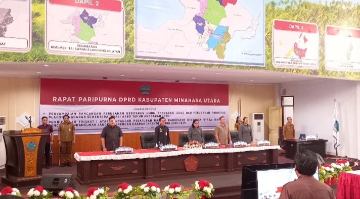 Mengawali paripurna Ketua DPRD Vonny Rumimpunu menyampaikan agenda paripurna pertama Penyampaian Rancangan Perubahan Kebijakan Umum Anggaran (KUA) dan Perubahan Prioritas Plafon Anggaran Sementara (PPAS) APBD Tahun Anggaran 2025, Kedua Pembicaraan Tingkat I atas Rancangan Peraturan Daerah Kabupaten Minahasa Utara tentang Rencana Pembangunan Jangka Menengah Daerah (RPJMD) Tahun 2025-2029.