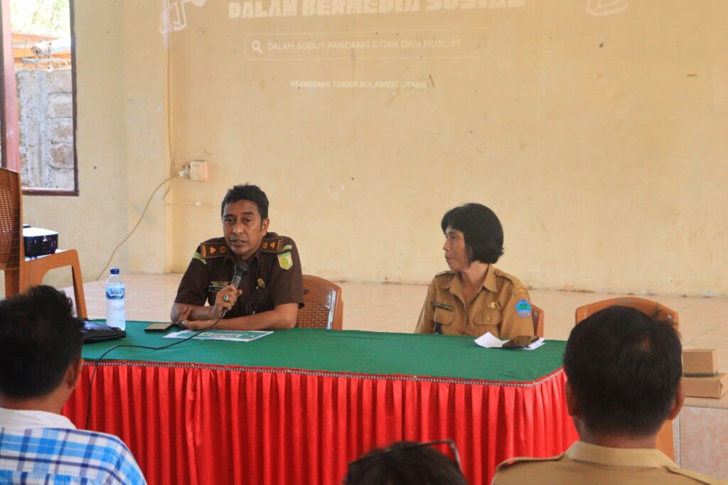 Penyuluhan yang mengangkat tema “Bijak dalam Bermedia Sosial” ini, diikuti sekitar 40 peserta dari unsur perangkat desa dan masyarakat setempat. Kepala Seksi Penerangan Hukum Kejaksaan Tinggi Sulawesi Utara, Janurius L. Bolitobi menjadi narasumber pada kegiatan ini.