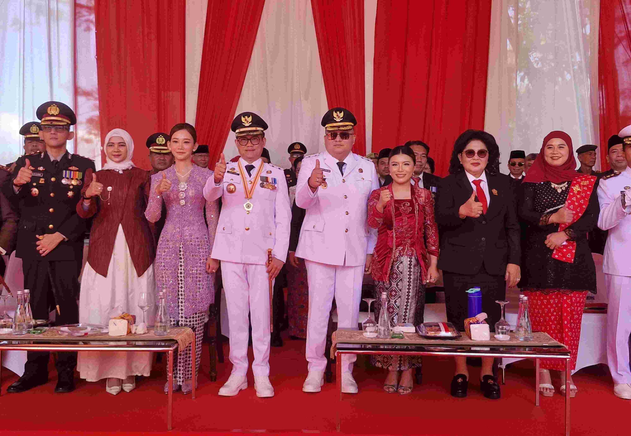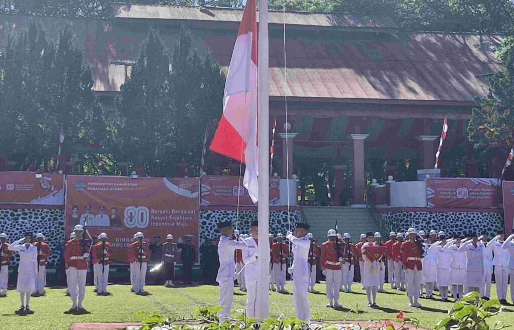 Hut kemerdekaan ke-80 mengusung tema nasional tahun ini“Bersatu, Berdaulat, Rakyat Sejahtera, Indonesia Maju” dan Bupati Joune Ganda, bertindak sebagai Inspektur Upacara.