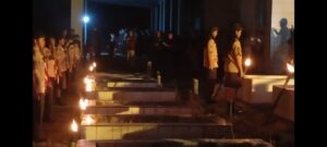 Malam renungan semakin khusyuk ketika anggota Pramuka menyalakan obor di setiap makam pahlawan, menciptakan panorama cahaya yang menyentuh hati.