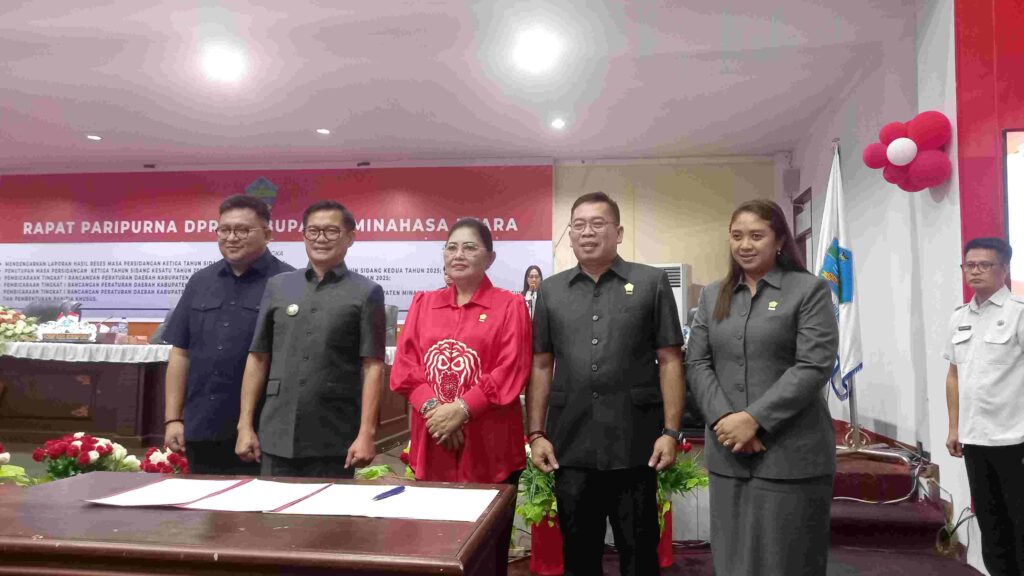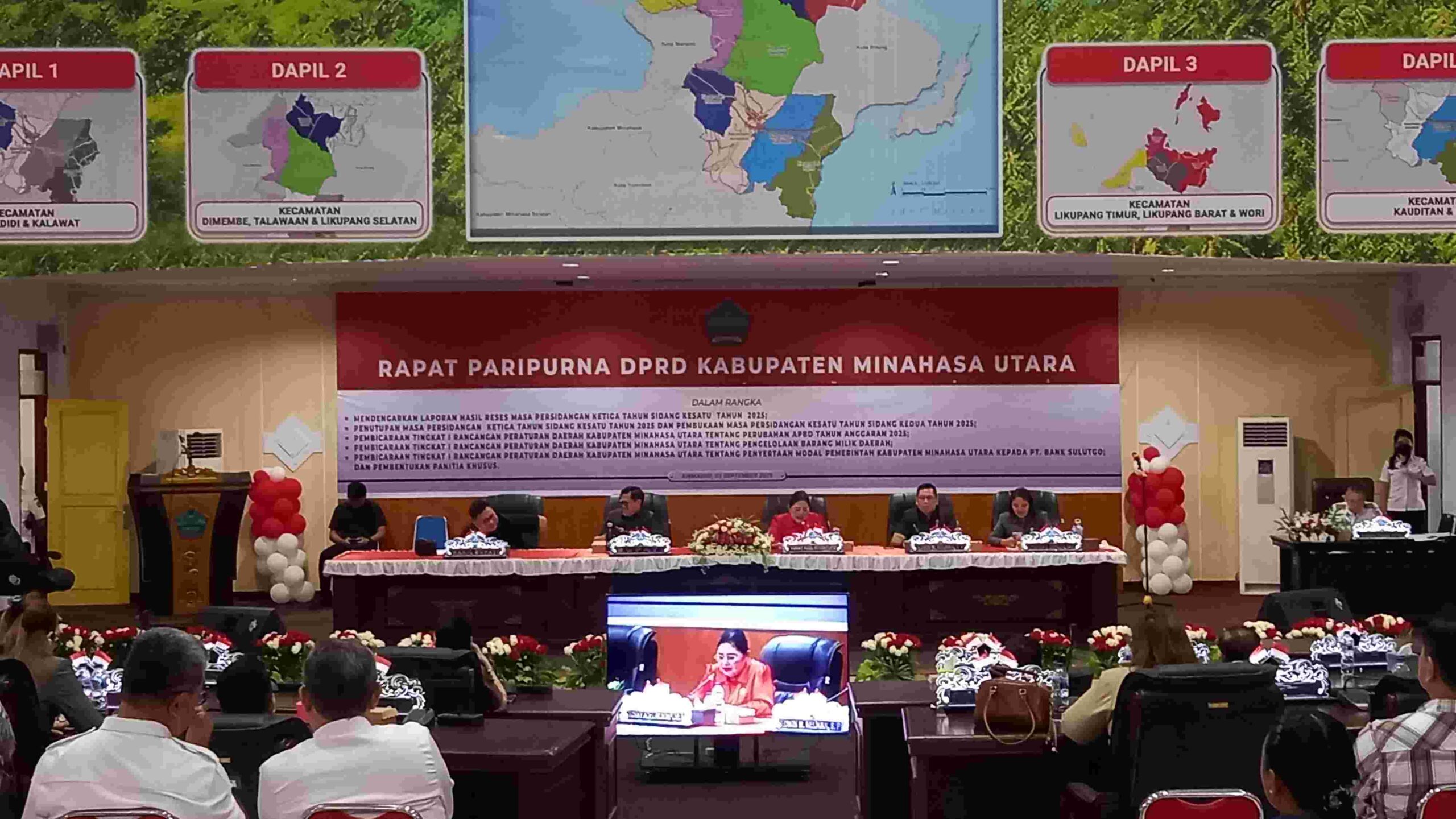 Rapat paripurna yang dipimpin Ketua DPRD Vonny Rumimpunu didampingi Wakil Ketua I Edwin Nelwan, Wakil Ketua II Cynthia Erkles dan dihadiri Wabup Kevin William Lotulung, Sekretaris Daerah Novly Wowiling, unsur Forkopimda, Kepala OPD, para Dirut, dan Camat.