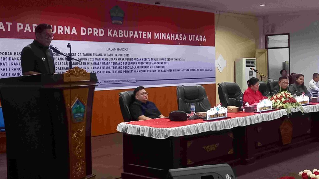 MINUT,Radarmanadoonline.com_Bupati Joune Ganda menghadiri langsung rapat paripurna Dewan Perwakilan Rakyat Daerah (DPRD) Minahasa Utara yang digelar di Gedung Tumatenden, Rabu (03/09/25).