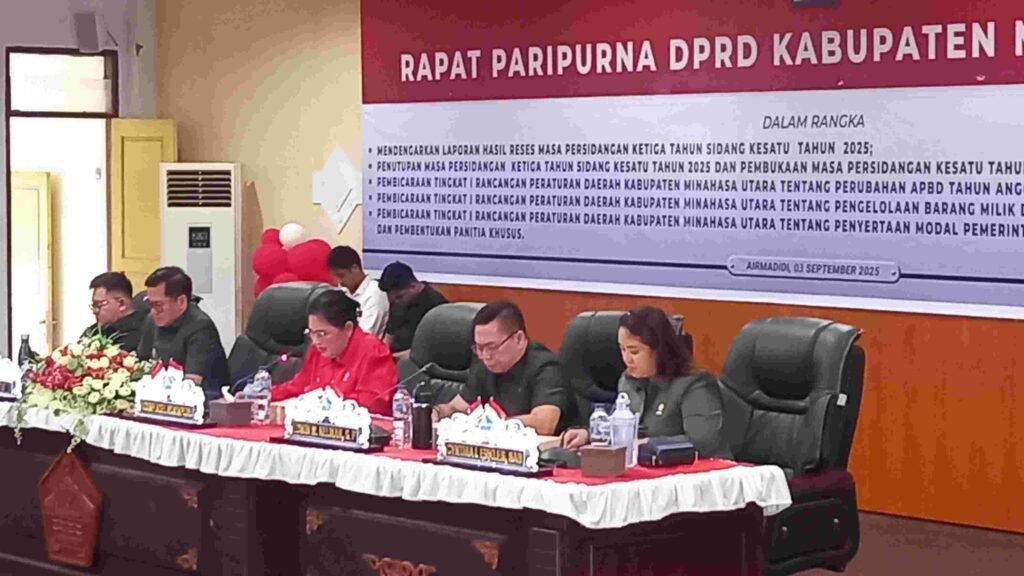 Ketua DPRD Vonny Rumimpunu menyampaikan, agenda rapat meliputi mendengarkan laporan hasil reses masa persidangan III, penutupan masa persidangan, serta pembukaan masa persidangan, Pembicaraan tingkat I atas Ranperda Kabupaten Minut tentang Perubahan APBD Tahun Anggaran 2025, Ranperda Kabupaten Minut tentang Barang Milik Daerah, serta Ranperda Penyertaan Modal kepada Bank SulutGo.